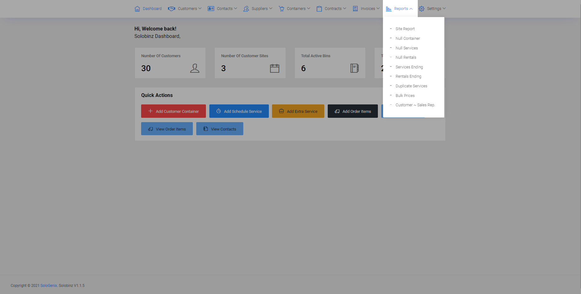 Sologenix ensures its valuable customers that Solobinz is a one platform solution for waste management business. Solobinz offer number of features including customer profiles, customer sites, contracts, supplier, containers, and bin. It also handles and manages the scheduling of all resources. You can also view order items, add extra service, and manage rentals.